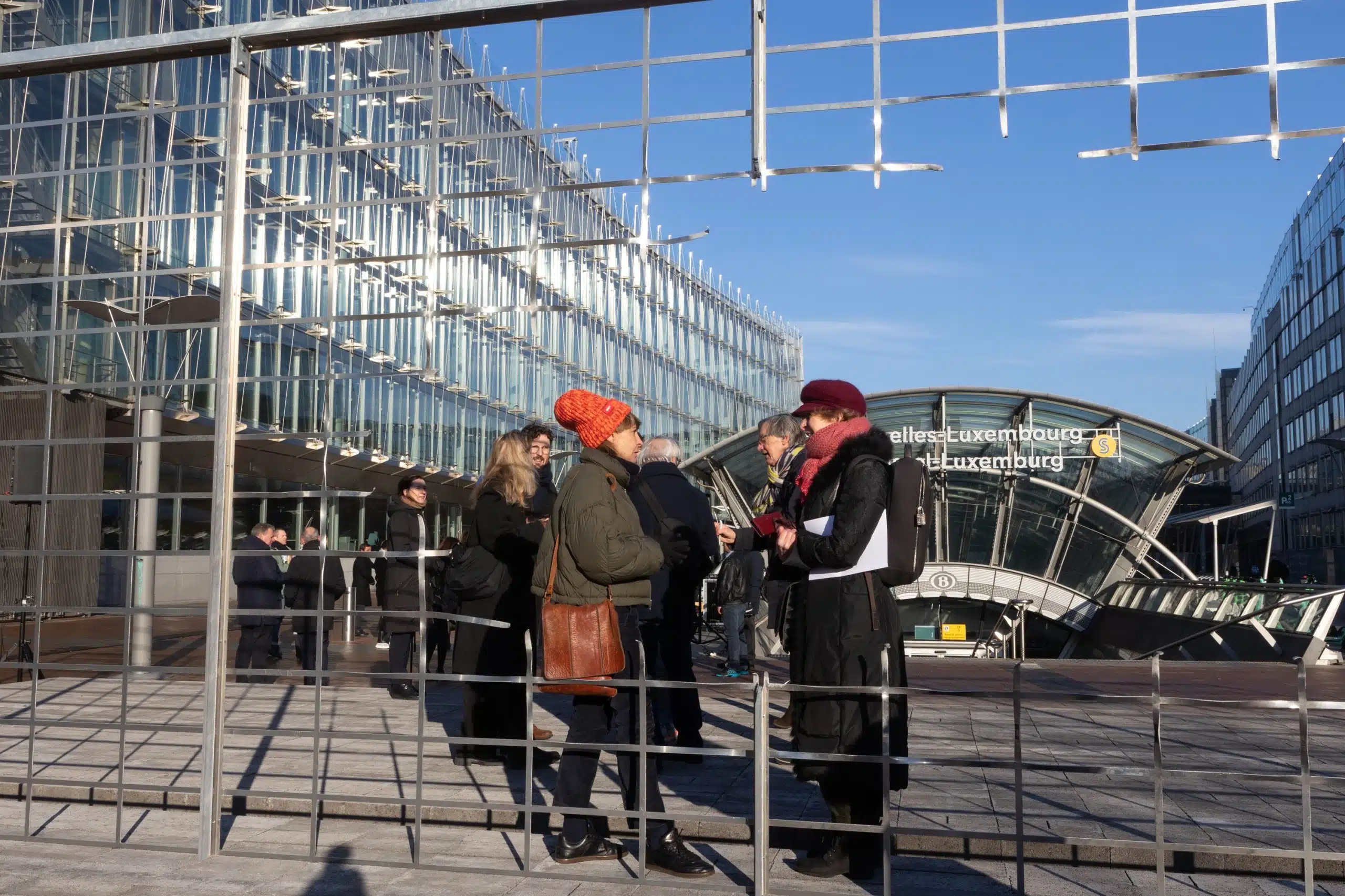 The inauguration was marked with two events. An official ribbon-cutting ceremony in the morning gathered policymakers from the European and Brussels landscape for speeches by Rainer Wieland (Vice-President of the European Parliament), Karine Lalieux (Belgian Federal Minister) and Rudi Vervoort (Minister-President of the Brussels-Capital Region). In the afternoon, a crowd of onlookers from the world of art and culture came the Esplanade to check out the new work and hear speeches from Ans Persoons (Brussels State Secretary) and Alain Hutchinson (Brussels Commissioner for Europe).